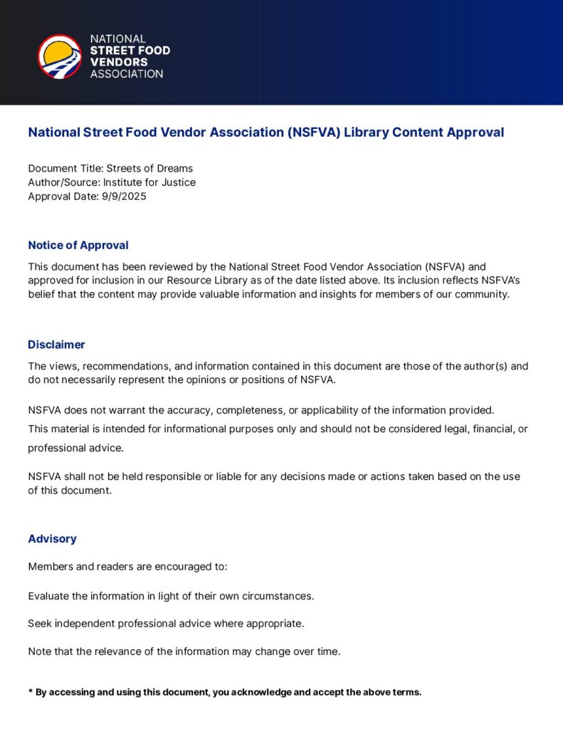 Institute for Justice report profiling vendors in major U.S. cities and quantifying vending’s economic impact (jobs, wages, taxes).
