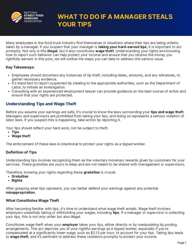 Tip theft isn’t just unfair—it’s wage theft, and it’s illegal. This guide walks tipped employees through the steps to take if a manager poc…