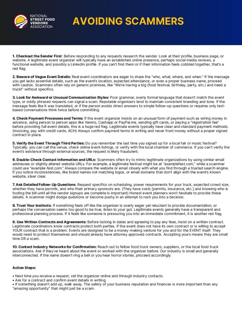 Scam event organizers target food truck owners with vague promises and shady payment requests that can cost you time, money, and credibility. This …